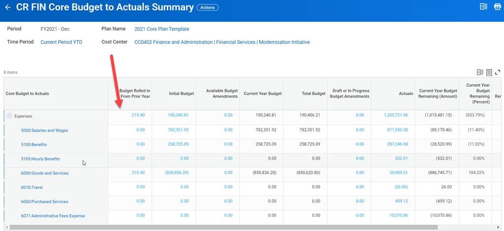 This includes the CR FIN Core Budget to Actuals Summary, which is currently not pulling budget data from the prior year. This will impact your ability to confirm beginning balances on core funds. To our knowledge, the rest of the data in this report is accurate. If you do run this report in the meantime, please be aware that the data in the column “Budget Rolled in From Prior Year” is missing or incorrect.