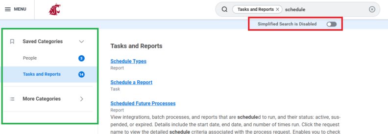Simplified Search is available to all WSU Workday users who wish to enable the functionality and may be turned on and off as desired. For more information about how to use Workday search, visit this reference guide.